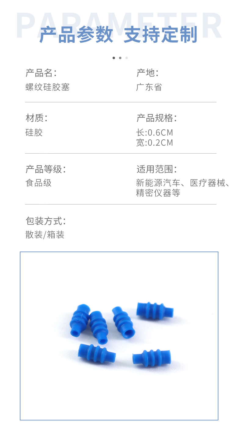 硅膠束線套主要運用于汽車端子接頭過線以及新能源插頭連接線裝配作用,產(chǎn)品在裝配過程之中可以起到良好的裝配以及穿插固定效果,在新能源產(chǎn)品當中它與塑膠以及五金精密接觸,外觀凹凸螺紋主要用于固定效果,材質(zhì)選擇汽車用專用硅橡膠原材料加工,性能穩(wěn)定,壽命良好!
